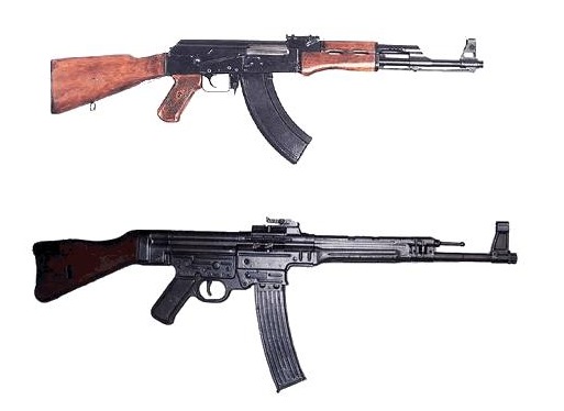 Automatul creat de Schmeisser (Sturmgewehr 44), semana cu AK-47, dar istoricii rusi sustin ca este doar o asemanare de suprafata, cele doua arme avand modalitati diferite de functionare. In plus, Mihail Kalshnikov a inceput sa lucreze la arma sa inca din anul 1943, iar in anul 1946 prototipul sau era deja testat in poligoanele Armatei Rosii.