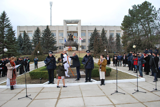 A urmat dezvelirea bustului marelui domnitor în faţa câtorva zeci de călărăşeni. Sergiu Artene, preşedintele Raionului Călăraşi, a mulţumit autorităţilor din Prahova pentru donaţie. Artene a vorbit despre reunirea celor două state româneşti şi despre emoţiile pe care le-a simţit de 1 decembrie la Ploieşti,acolo unde a participat la festivităţile dedicate Zilei Naţionale a României. Artene a promis ca scuarul în care a fost instalat bustul donat de Mircea Cosma să devină aleea domnitorilor.