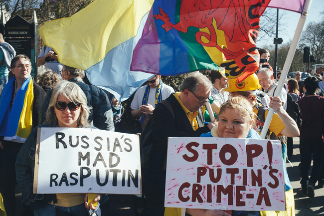 Participanții la miting au mers de la Arca de Marmură (Marble Arch) până la ambasada Federației Ruse din Londra. Protestarii purtau drapele ucrainene și banere anti-Putin. Colegul nostru Ramin Mazur a fost martor la protest și ne-a transmis o serie de poze originale din Londra.