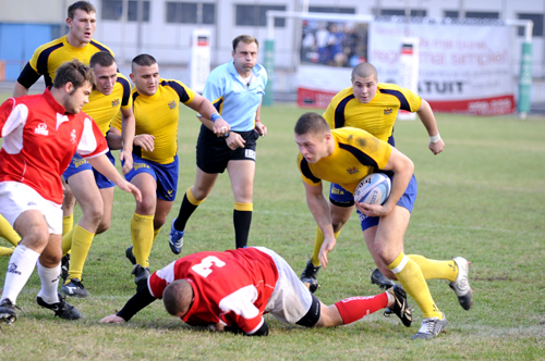 Tensiunea meciului a condus la numeroase accidentari. Scorul a fost deschis doar dupa o jumatate de ora a primei reprize, cand Daniel Hancu a ridicat tribunele in picioare, realizand un eseu. Scorul de 5-0 a rezistat pana la inceputul celei de-a doua parti a jocului, cand oaspetii au egalat tabela. Cu doar sapte minute inainte de final, Daniel ?urcanu a inscris eseul de 10-5 si a propulsat echipa „tricolorilor” in meciul final.