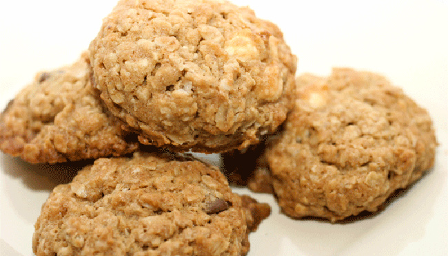 Amestecaţi toate ingredientele uscate: ovăzul, alunele, făina şi zahărul. Adăugaţi restul ingredientelor şi amestecaţi până se omogenizează. Aluatul va fi puţin lipicios. Formaţi bile micuţe din aluat şi aşezaţi-le pe tava cu hârtie de copt. Dacă se lipesc puţin de mână, umeziţi-vă mâinile tot la trei-patru bile. Aplatizaţi bilele cu fundul unui pahar. Umeziţi-l şi pe acesta, dacă se lipeşte. Coaceţi fursecurile la 1800C aproximativ 15 minute. Fursecurile vor fi moi când le scoateţi din cuptor, dar după ce se răcesc complet vor fi numai bune.