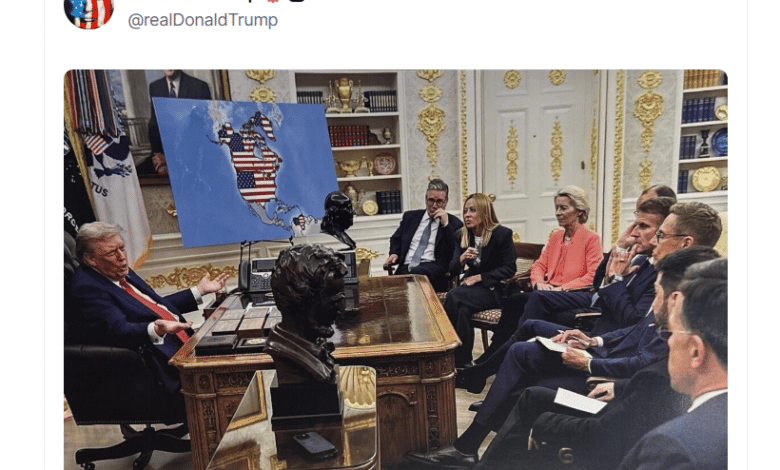 În aceeași logică, au circulat în ultimele săptămâni reprezentări și „hărți” care redesenează simbolic regiunea, Canada apare tratată ca un apendice american, iar retorica despre dominația SUA în „OUR hemisphere” (emisfera noastră) a devenit o etichetă politică.