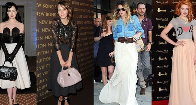 Dacă îţi doreşti o apariţie ultrafeminină, alege fustele lungi cu imprimeuri florale. În cazul când eşti invitată la un eveniment cu pretenţii, poartă o fustă din satin, cu efect metalic şi imprimeu artistic sau cu buline.