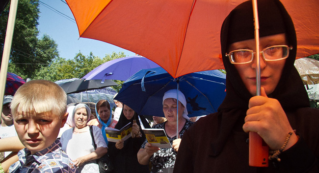 Chiar dacă ploaia a doborât copaci, a distrus maşini, a lăsat localităţi fără curent electric, oamenii care protestează în faţa Palatului Republicii împotriva noilor acte de identitate spun că nu le este frică şi nimic nu îi va convinge să renunţe la protest. Printre cei care protestează sunt bătrâni, tineri, invalizi, femei însărcinate şi copii de câţiva anişori. Locul în care s-au instalat arată ca o mică colonie, dar unde, se pare, există de toate: mâncare, apă, lumânări, plăpumi, umbrele. Femeile care împart mâncarea mulţimii flămânde spun că nu le lipseşte nimic. Bucatele le primesc gata, aduse în saci de oamenii care participă la protest. Rezervele le permit să ofere mâncare de trei, patru ori pe zi. În sacii de lângă masă observ roşii, piersici şi apă îmbuteliată. În timpul în care nu participă la rugăciuni, copiii se joacă în „oraşul improvizat”, se udă cu apă, în timp ce părinţii îşi fac cruce şi se roagă. Aceştia spun că i-a abandonat şi presa, şi guvernarea, care-i tratează cu ironie, dar sunt siguri că Dumnezeu nu i-a lăsat. Deci, vor rămâne în oraşul lor improvizat până când Cel de Sus în care-şi pun toată nădejdea le va lumina şi oficialilor mintea. Ei spun că va veni o zi în care Dumnezeu va ieşi învingător, la fel şi ei, aceasta însemnând că legea privind introducerea registrului electronic de evidenţă a populaţiei va ceda în faţa lor…