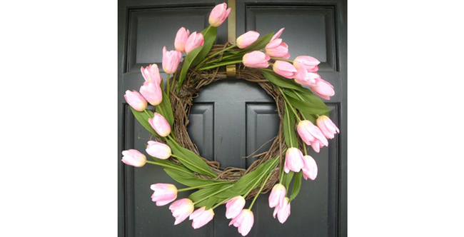 O ghirlandă de flori pusă pe uşă va aduce un zâmbet tuturor care îţi vor trece pragul. Pentru suport, te poţi folosi de acelaşi tip de crenguţe descrise mai devreme sau îl poţi realiza din sârmă, răsucind-o de mai multe ori. În ceea ce priveşte florile, foloseşte unele de sezon, în mai multe culori, putând fi chiar de soiuri diferite. Florile le poţi prinde cu nişte sfoară sau, pentru un aspect elegant, cu nişte panglici.