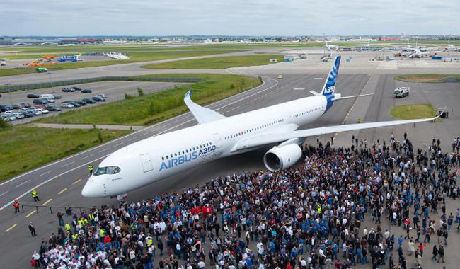 Avionul a decolat de pe aeroportul din Touluse în prezența a mii de spectatori. Primul zbor a fost efectuat pentru testarea mecanismelor. A350 este replica pe care o dă concernul european Airbus concurentului american Boeing, ce s-a impus pe piață cu modelul Boeing Dremliner 787. Producătorul anunță că noul model va fi mult mai confortabil, va parcurge distanțe mai mari și va consuma mai puțin compustibil. Dacă testele vor da rezultate bune, atunci producția în seria al lui A350 va începe în 2014.