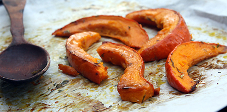 Îl aşezăm într-o tavă potrivită şi îl băgăm în cuptor să se coacă. Dovleacul se rumeneşte în cuptorul încins şi se înmoaie, devenind dulce şi aromat.