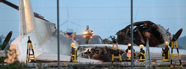 Avionul unei companii ucrainești se pregătea de decolare, când membrii echipajului au observat o flacără în salon. La stingerea focului au fost implicate 60 pompieri și 15 autospeciale. Cea mai mare parte a avionului a fost mistuită însă de flăcări. Din cauza incidentului, aeroportul a sistat pentru o oră decolările și aterizările altor avioane. Pompierii nu cunosc deocamdată din ce motiv a izbucnit incendiul. Membrii echipajului nu au suferit, pentru că au reușit să părăsească la timp nava. În shimb, mii de pui care trebuia să ajungă în Ucraina au pierit. Avionul An-12 cu patru motoare a fost produs la începutul anilor 70 ai secolului trecut în Uniunea Sovietică.