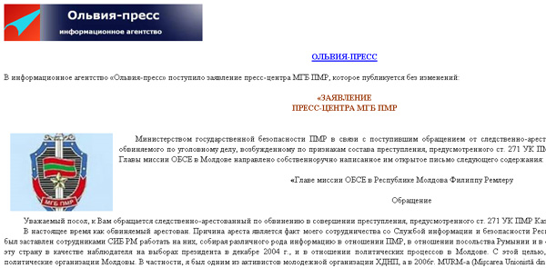 Autodenunţul lui Cazac a fost difuzat de Agenţia tiraspoleană „Olvia press” şi este adresat lui Philip Remler, şeful Misiunii OSCE în Moldova.