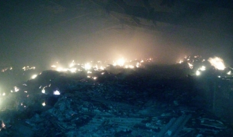 Incendiul a izbucnit în interiorul depozitului, însă salvatorii nu ştiu cauza exactă.
