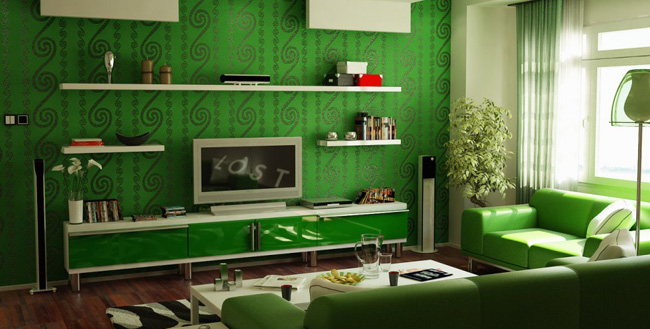 Pentru că este o culoare atât de vibrantă, verdele-mazăre trebuie inserat într-o încăpere a cărei funcțiune implică o activitate intensă asemenea livingului sau bucătăriei.