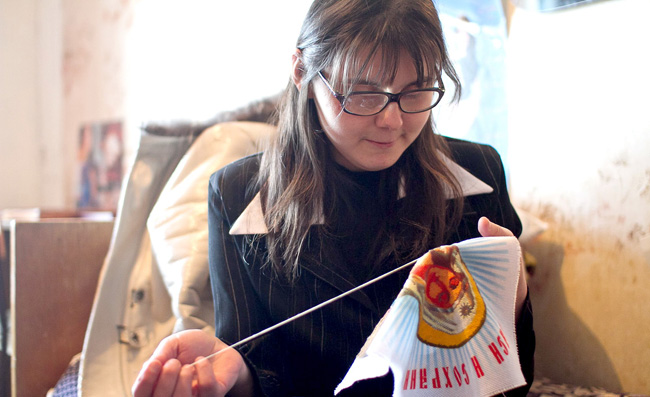 Când i-am făcut o vizită, tot brodând am găsit-o. Tânăra, studentă la masterat la Universitatea de Stat din Tiraspol cu sediul la Chişinău, muncea de zor la o nouă lucrare – o icoană a Maicii Domnului. Ea mi-a spus că a moştenit această deprindere de la mama sa. „De fiecare dată când o vedeam pe mama brodând, încercam să fac şi eu ca dânsa, dar mama îmi interzicea, ca să nu-mi pierd şi mai mult vederea”, povesteşte Irina. Cu toate acestea, nu a renunţat, ba chiar şi-a transformat această îndeletnicire într-o pasiune fără de care nu-şi mai vede viitorul. Speră s-o transforme, cu timpul, într-o afacere profitabilă.