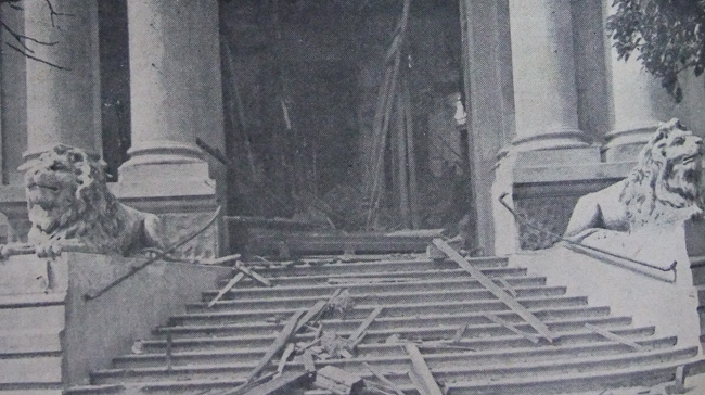 Suntem la douăsprezece ore după ocuparea oraşului şi cupola monumentalei biserici, cu trei altare, fumegă.