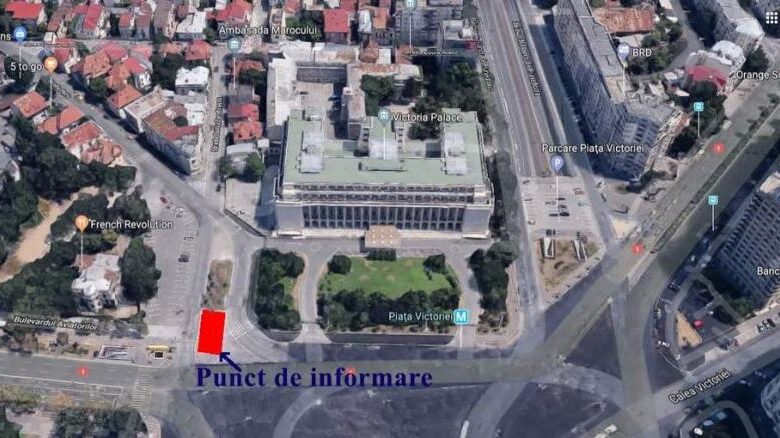 – între orele 17.00 – 22.15, se va restricţiona traficul rutier în Piaţa Victoriei, până la ocuparea perimetrului delimitat de: prelungirea Bd. Aviatorilor, Şos. Kiseleff, Bd. Ion Mihalache, Str. Buzeşti, Calea Victoriei, intersecţia Bd. Lascăr Catargiu şi Bd. Iancu de Hunedoara.