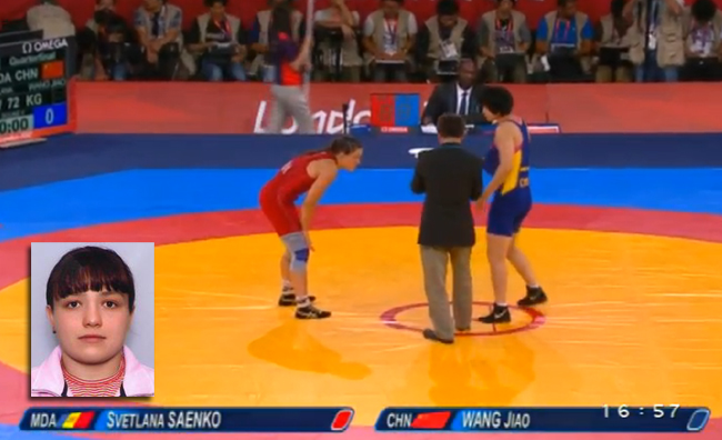 Svetlana Saenko care evoluează pentru Republica Moldova la proba lupte libere s-a întâlnit în optimi de finală cu chinezoaica Wang Jiao, campioană olimpică la Beijing. În runda a doua, Wang Jiao a reușit să o arunce pe spate pe moldoveancă, asigurându-și un scor de 5-0.