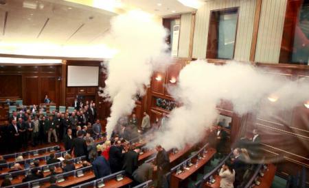 În mai multe rânduri, opoziția a aruncat cu gaze lacrimogene în parlamentul de la Pristina, dar și cu ouă și a provocat scandal, pentru a împiedica ținerea ședințelor.