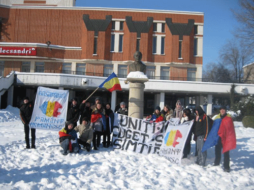 Ieri, toata lumea de buna credinta din municipiul Balti a fost invitata in fata Universitatii „Alecu Russo” din localitate, pentru a consemna 151 de ani de la Unirea Principatelor Romane, Moldova si Muntenia.