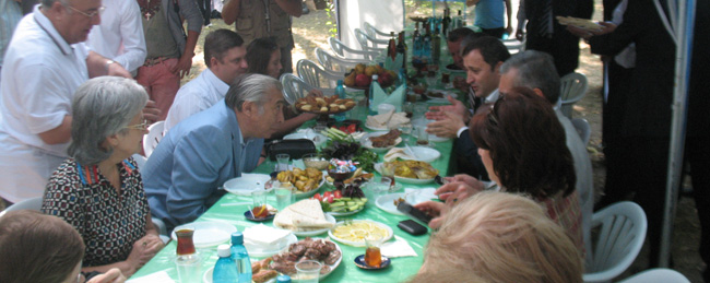 Apoi, oaspeţii au trecut pe străzile improvizate ale etniilor. Demnitarii s-au oprit mai întâi în Casa Mare a moldovenilor, unde au servit vin şi au mâncat sarmale, iar Marian Lupu i-a îndemnat şi pe ziarişti să ia câte un păhărel. Nimeni, însă, nu s-a atins de băutură şi bucate, toţi fiind în exerciţiul funcţiunii. Oficialii au trecut pe Strada evreiască, iar mai apoi au poposit la cea a azerilor. Aceştia din urmă i-au servit cu ceai. În schimb, ucrainenii le-au dat colţunaşi şi votcă.