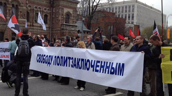 Participanții la marș cer eliberarea persoanelor care au fost arestate după protestul care a avut loc în Piața Bolotnoie din Moscova, pe 6 mai 2012. „Dosarul Bolotnoie” vizează 30 de persoane, dintre care trei au fost deja condamnate.