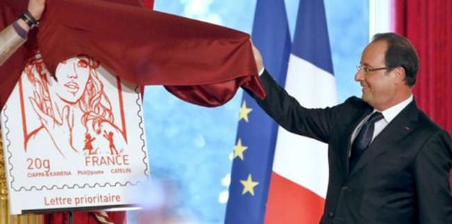 Imaginea alegorică a Franței reprezintă o femeie tânără cu o căciulă frigiană. Din anul 1944, când Franța a fost eliberată de ocupația fascistă, chipul Marianei de pe timbrele poștale s-a schimbat periodic, purtând trăsăturile unor actrițe sau modele franceze celebre. De fiecare dată noua imagine este aleasă în urma unui concurs. În acest an, a fost selectată versiunea propusă de pictorii Olivier Ciappa și David Kawena, care au fost inspirați de chipul liderului mișcării FEMEN Inna Șevcenko. Săptămâna trecută, activista ucraineană a primit azil politic în Franța.