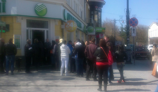 Locuitorii orașului Simferopol iau cu asalt banca rusă
