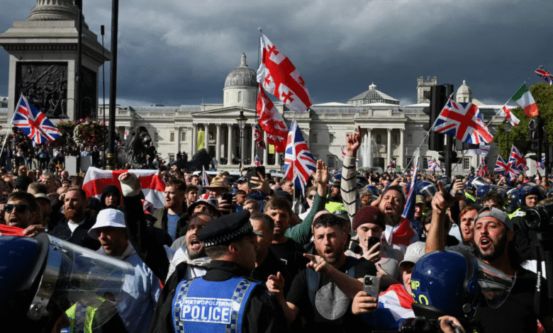 În această vară, numeroase manifestații au avut loc în fața hotelurilor care găzduiesc solicitanți de azil, iar la o manifestație organizată de extrema dreaptă la Londra au participat până la 150.000 de persoane, potrivit poliției.