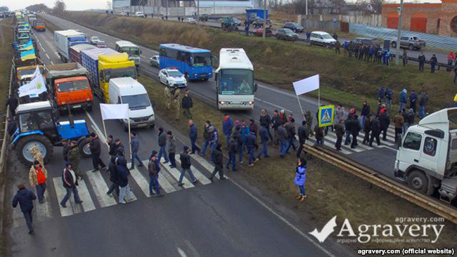 Agrarienii au blocat mai mult drumuri interurbane în regiunile Zaporojie, Herson, Cernigov, Cerkask, Kiev, Vinnița. Protestatarii cer ca președintele Piotr Poroșenko să pună veto pe proiectul noului Cod fiscal, spunând că taxele modificate le vor ruina gospodăriile.