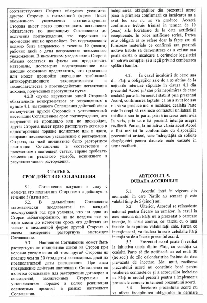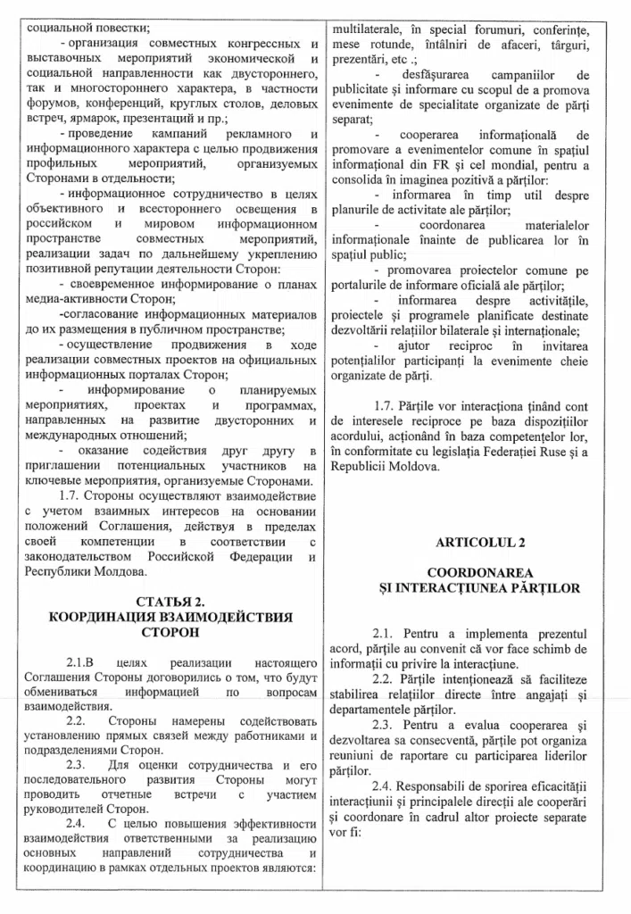 Acest document nu a fost o simplă formalitate protocolară, ci prevedea clauze ce pun în pericol securitatea națională și autonomia locală, incluzând schimbul de informații sensibile și implicarea partenerilor ruși în elaborarea documentelor strategice, inclusiv a Planului Urbanistic General al municipiului Chișinău. Astfel, în timp ce România plătea pentru fațade, dezvoltarea profundă a Chișinăului risca să fie desenată după hărțile și interesele Moscovei.