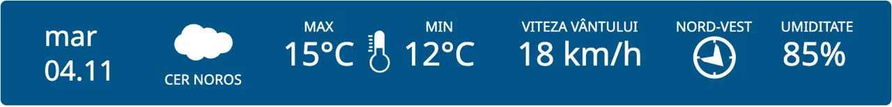 Potrivit Serviciului Hidrometeorologic de Stat, vântul va sufla din nord-vest și va avea o viteză de 18 km/h. Umiditatea aerului va fi de 85%.