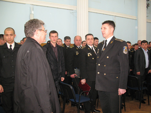 Poliţiştii nu s-au arătat prea prietenoşi. Ei l-au învinuit pe Ghimpu că a făcut eroi din protestatari agresivi, „dar la poliţişti le-aţi dat premii de câte o mie de lei pe care i-au cheltuit pentru tratament ca mai apoi să aibă domnul ministrul ce raporta”, a spus un poliţist. Colegii săi l-au aplaudat. La rândul său, Ghimpu i-a învinuit că mulţi dintre ei au ştiu cum a fost omorât Valeriu Boboc, dar au tăcut. „Eu ştiu că sunt unii comandanţi care interzic subalternilor să spună adevărul. Nu înţeleg, de ce îi ascundeţi”, le-a spus preşedintele interimar. Poliţiştii au mai propus ca să fie creat un centru de reabilitare psihologică pentru toată lumea care a suferit în urma evenimentelor din 7 aprilie. În acea zi au fost răniţi 275 de colaboratori ai poliţiei.