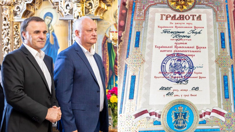 Potrivit imaginilor, lui Dodon i-ar fi fost oferit ordinul „Sfântul Întocmai cu Apostolii, Marele Cneaz al Vladimir” al Bisericii Ortodoxe Ucrainene, pentru „merite deosebite”.