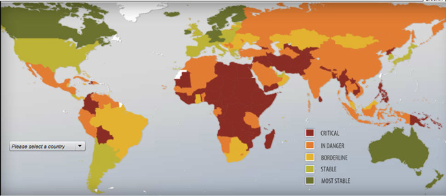 Primele locuri în rating sunt ocupate de 35 cele mai incapabile state în frunte cu Somalia (Congo, Sudan, Afganistan, Irak, Egipt, Burkina Faso, etc), în care nivelul de risc este evaluat de către autori ca o evaluare critică (indexul variază între 92 și 113.9 puncte).