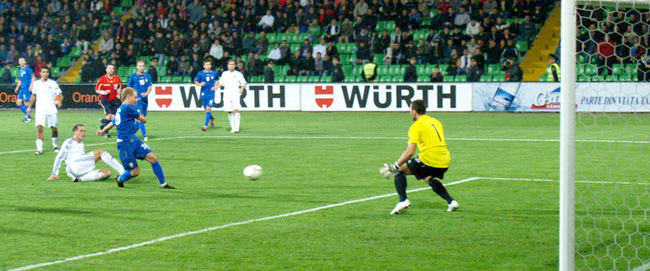 Cu toate aceste asalturi din primele minute, era s-o păţim ruşinos de tot! În minutul trei, Matteo Vitaioli este lansat unul la unul cu portarul Gaiduchevici şi nu i-a trebuit mult ca să introducă mingea în plasă. Ne umpleam de ruşine dacă arbitrul de tuşă nu semnala poziţie de offside a jucătorului celei mai slabe echipe din lume.