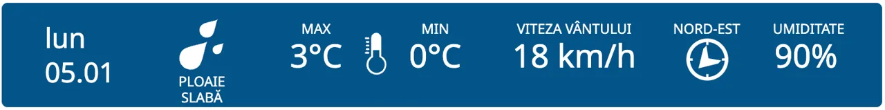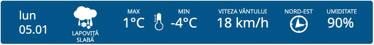 Începem săptămâna cu ninsori slabe la nord, lapoviță în centru și ploi slabe la sud. Maximele termice vor fi cuprinse între -2 și +3 grade Celsius.
