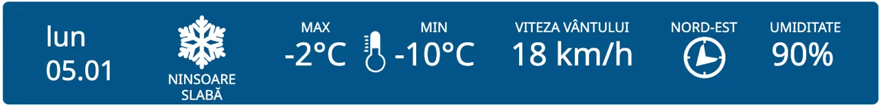 La nord, termometrele vor arăta temperaturi cuprinse între -10° și -2°C.