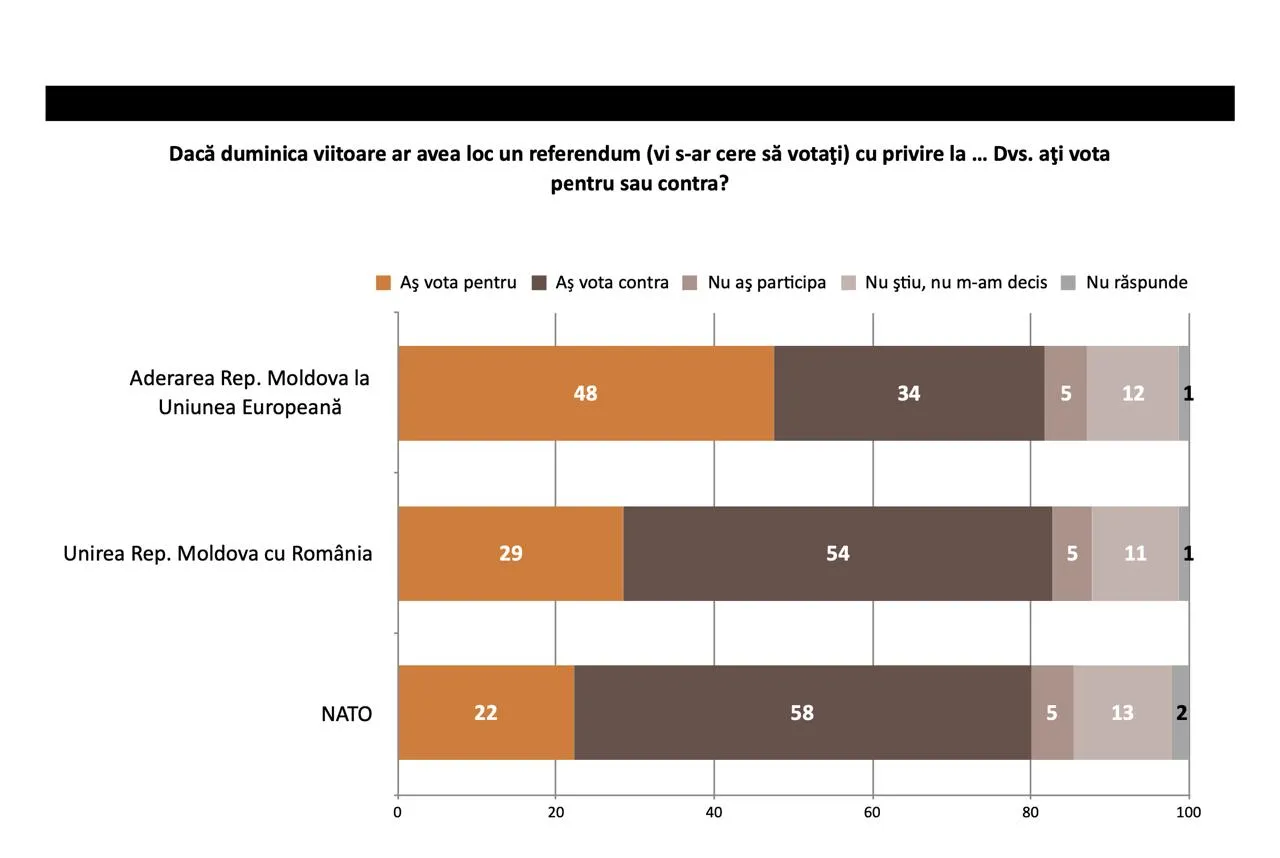 Sprijinul pentru unirea Republicii Moldova cu România rămâne constant în rândul moldovenilor de acasă, însă în realitate opțiunea unionistă este în ascensiune. Opinia aparține sociologului Doru Petruți, director IMAS, și a fost făcută în cadrul emisiunii „Contrasens”. Potrivit celui mai recent sondaj, 29% dintre cetățenii aflați în Republica Moldova ar vota pentru unire în cazul unui referendum.