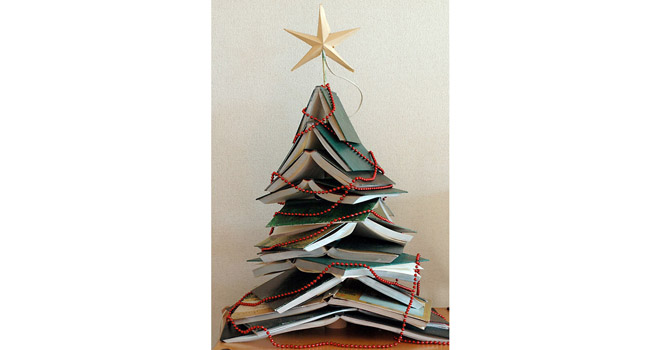Noi vă propunem să optaţi în acest an pentru un „brad cititor”, unul eco, care-l puteţi face alături de întreaga familie. Drept materie primă puteţi folosi o parte din biblioteca voastră. Pentru mai multă inspiraţie, vedeţi imaginile.