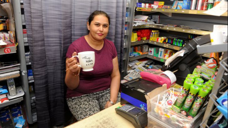 În magazin nu se mai afla nimeni, însă vânzătoarea nu și-a pierdut cumpătul. Pentru că tocmai preparase o cană cu ceai, i-a spus bărbatului să aștepte până când termină de băut.
