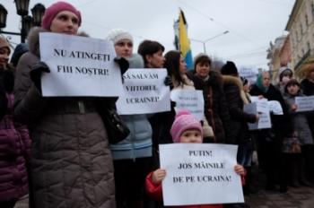 Oamenii din Cernăuți cer lui Putin să retragă armata rusă de pe teritoriul Crimeii