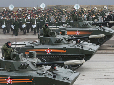 La parada militară – o demonstraţie a armamentului rus de ultimă generaţie – este prezent şi secretarul general ONU, Ban Ki-moon. Noul tanc Armata T-14 este piesa centrală a paradei militare din centrul Moscovei, la care sunt prezentate şi rachete balistice intercontinentale. Aproximativ 16.000 de militari ruşi participă la eveniment, fiind aşteptaţi şi 160.000 de spectatori.
