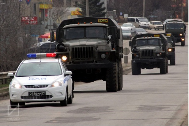 Patru camioane cu militari ruşi se îndreaptă spre Mariupol