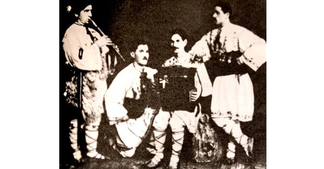 LA PAS PRIN EUROPA. Drumul începe într-un aprilie ploios la Bucureşti. „Cerul acoperit şi plouă mărunt. Toţi patru în costume naţionale şi opinci ieşim din Capitală”. Sunt primele cuvinte din jurnalul de călătorie al lui Dumitru Dan, pe 1 aprilie 1910. Însoţiţi de Harap, câinele care-i va urma aproape tot timpul, cu bagaje ce nu depăşesc opt kilograme în spate, cei patru se îndreaptă spre Braşov. În cei şase ani, vor găsi în oraşele în care ajungeau costume şi opinci trimise prin poştă de rude, după un calendar strict… Au ajuns la Budapesta după doar trei zile de la pornire. De aici până la Viena nu fac nicio oprire. Prima impresie puternică o lasă capitala Imperiului Austro-Ungar. Tot aici dau prima reprezentaţie, într-un teatru de cartier, şi câştigă primii bani. Urmează Berlinul, unde reuşita unui al doilea spectacol alungă primele gânduri de deznădejde. La graniţa cu Danemarca apare primul obstacol: un vameş „refractar la ideea de turism internaţional” îi arestează şi îi trimite în Flensburg, considerându-i spioni! „Ne-am lămurit cu superiorii şi apoi ne-am reîntâlnit cu el la vamă”, scrie Dan.