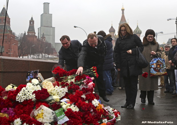 Persoane în negru au curăţat locul de reculegere în amintirea lui Nemțov