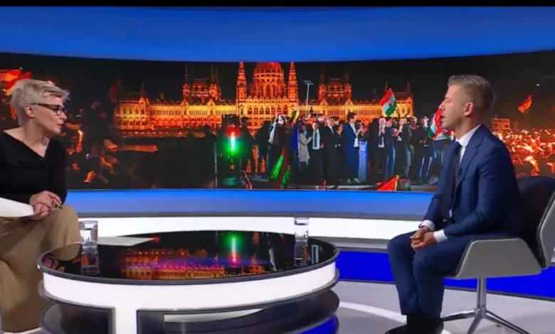 Chiar din debutul interviului, noul lider de la Budapesta a amintit că ultima sa apariție în mass‑media controlată de stat a fost în urmă cu un an și jumătate. „Văd că în ultimele 1–2 zile, de când a avut loc schimbarea de regim și de când Fidesz a suferit o înfrângere foarte gravă, unii oameni au încercat să funcționeze ca mass‑media independentă în această clădire”, a precizat el.