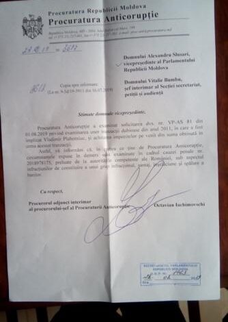 „Astfel, vă informăm că, în partea ce ține de Procuratura Anticorupție, circumstanțele expuse în demers sunt examinate în cadrul cauzei penale nr. 2018978175, preluate de la autoritățile competente ale României, sub aspectul infracțiunilor de constituire a unui grup infracțional, șantaj, înșelăciune și spălare a banilor”, se arată în răspunsul procurorilor.