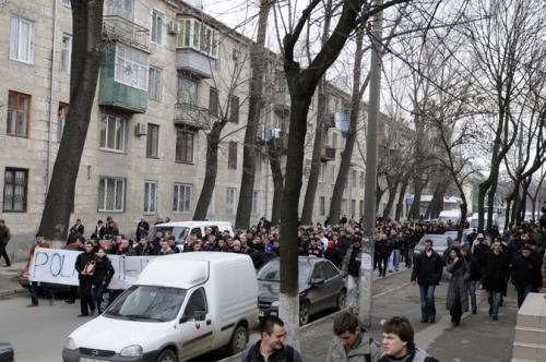 Tinerii au continuat marsul de protest spre Procuratura municipala si cea generala, dar au fost nevoiti sa se intoarca, afland ca un protestatar, Mihai Badascu, a fost batut si retinut de patru politisti in civil. Dupa acest incident, actiunea a fost reluata, dar nimeni n-a iesit sa vorbeasca cu protestatarii. Mai mult, Petru Corduneanu, sef de directie la MAI, a negat faptul ca Mihai Badascu a fost batut si retinut. Multi participanti erau de la Colegiul de constructii, al carui director, Valeriu Polivanov, i-a rugat sa incheie actiunea de protest.