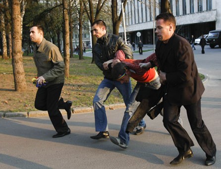 Pentru a afla circumstanţele participării acestora la dezordinile în masă din 7 – 8 aprilie 2009, fără întocmirea procesului-verbal de reţinere şi îngrădindu-le posibilitatea de a contacta părinţii sau avocatul, i-au privat ilegal de libertate pentru 5 ore. În acest timp victimele au fost bătute, torturate, ameninţate şi impuse să recunoască participarea la dezordinile în masă, devastarea şi sustragerea bunurilor materiale din edificiile Preşedinţiei şi Parlamentului.