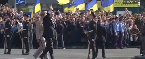 Ucraina a marcat duminică împlinirea a 23 de ani de la declararea independenţei faţă de Uniunea Sovietică cu o paradă militară de proporţii la Kiev, la care, în afară de preşedintele Poroshenko, au participat sute de militari şi s-a defilat cu echipament militar de lupta, menţionează DPA. Vehicule blindate, dotate cu arme antitanc şi mitraliere, şi camioane care transportau sisteme de rachete au defilat în urmă coloanelor de militari, notează şi Reuters.