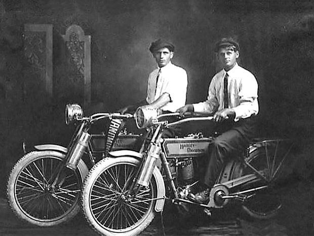 Istoria Harley-Davidson începe în 1901, când Harley, în timp ce lucra ca ucenic proiectant pentru Barth Mfg. Co., a elaborat schiţele unui motor care să poată fi montat pe cadrul unei biciclete obişnuite. |n următorii doi ani, Harley şi prietenul său din copilărie, Arthur Davidson, au lucrat la prima motocicletă, care a fost terminată în 1903, cu ajutorul fratelui lui Arthur, Walter Davidson. La testarea motorului, Harley şi Davidson au înţeles că acesta nu este suficient de puternic pentru a putea urca dealurile din împrejurimi fără a se ajuta de pedale.