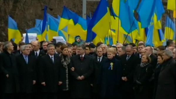 Marșul Demnității a început astăzi după-amiază la Kiev. Evenimentul organizat în centrul Kievului pe Maidanul Independenței a fost condus de președintele Ucrainei Petro Poroșenko. Alături de el au fost prezenți peședintele Poloniei Broniław Komoroswski, președintele Consiliului Europei Donald Tusk, președintele Litiuaniei Dalia Grybuskaite, precum și președintele Slovaciei Andrei Kiska, al Republicii Moldova, Nicolae Timofti și al Georgiei Giorgi Margwelaszwili.